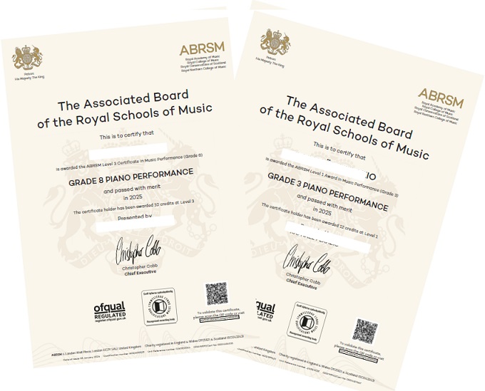 Examens ABRSM : deux pianistes, grades 3 et 8 réussis ! (videos)